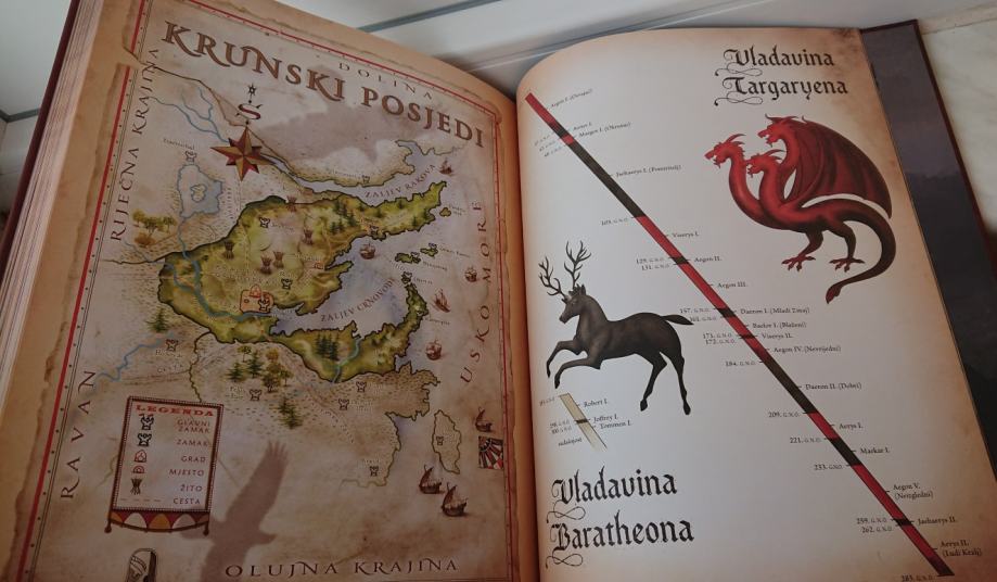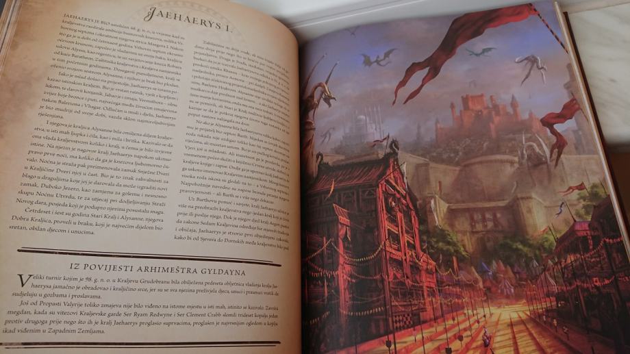 Ovo bogato ilustrirano izdanje – s više od 170 originalnih likovnih djela u boji – donosi iscrpnu povijest Sedam Kraljevina sa živopisnim prikazima epskih bitaka, zakletih suparništava i odvažnih pobuna koje su prethodile događajima opisanim u književnom serijalu Pjesma Leda i Vatre i HBO-ovoj seriji Igra prijestolja. U dugogodišnjem radu na ovoj knjizi Martinu su pomagali Elio M. García, Jr. i Linda Antonsson, osnivači poznate stranice westeros.org – možda jedini ljudi koji poznaju taj svijet gotovo jednako dobro kao i njegov nadahnuti tvorac.