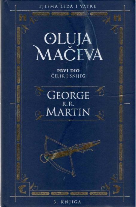 Komplet od 2 sveska (1. Čelik i snijeg ; 2. Krv i zlato ). Rat i dalje bjesni u Sedam Kraljevina. Robb Stark traži osvetu i okreće leđa mudrim majčinim savjetima. Tyrion Lannister nastoji održati autoritet i čast, no na svakom ga koraku potkopavaju rođena sestra i otac. Sansa Stark pokušava naći izlaz iz zatočeništva u Kraljevu Grudobranu, a njezina sestra Arya probija se nepreglednom divljinom. Na Zidu postaje sve opasnije. Jonu Snowu i njegovim ljudima prijete vojska divljaka i natprirodna, strahotna stvorenja. Daleko preko Uskog mora, četrnaestogodišnja Daenerys U-Oluji-Rođena vatrom svojih zmajeva satire robovlasničke gradove i sigurno napreduje prema Željeznom prijestolju. Scene bitki zapanjujuće su stvarne, likovi su pomno profilirani,no ono što nas nezaustavljivo privlači ovoj priči tragedija je Starkovih. S druge strane, i više je no intrigantna kuća Lannister, njihova opakost i podlost izbija iz svake njihove riječ, a svaka njihova topla riječ zapravo znači prijevaru i žeđ za moći. Martin je na sebe preuzeo zadatak učiniti fantasy što realističnijim. I u tome zbilja uspijeva. Naivna romantičnost svojstvena fantasyju potpuno je iščeznula iz ove priče. Poštenja nema, pogotovo ga nema u svijetu Zapadnih Zemalja, u kojima odanost ne traje dulje od treptaja, prava ljubav postoji samo u pjesmama, a pogibaju pogrešni ljudi. Međutim, svaki je redak Martinova serijala protkan nadom pa i dalje čitamo iščekujući pravdu.Stranica: 636Dimenzije: 150 x 230 mmJezik: ZagrebPismo: LatinicaStanje: Nova knjigaUvez: TvrdiGodina: 2018