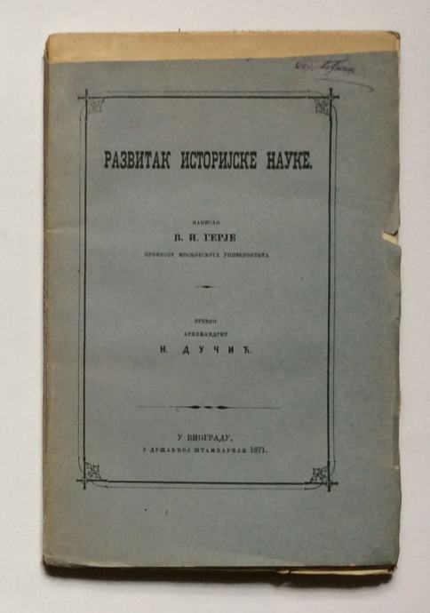 GERJE, RAZVITAK ISTORIJSKE NAUKE, BEOGRAD, 1871