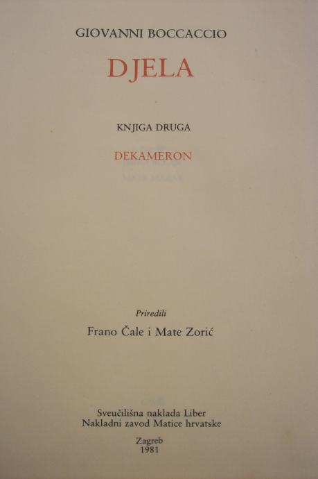 GIOVANNI BOCCACCIO - DJELA II - DEKAMERON