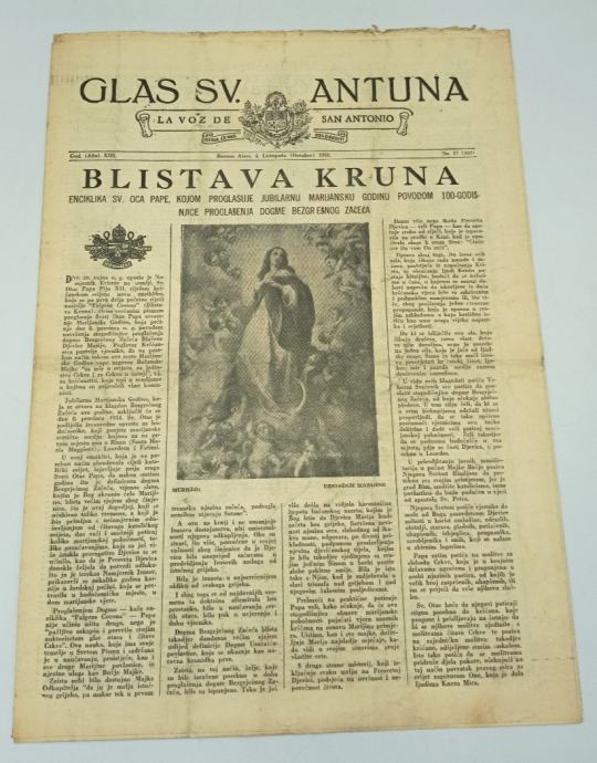 Glas sv. Antuna br. 17(162)/1953.Stranica: 11Dimenzije: 29.5x41.5Jezik: Buenos AiresPismo: LatinicaStanje: Vrlo dobroUvez: MekiGodina: 1953
