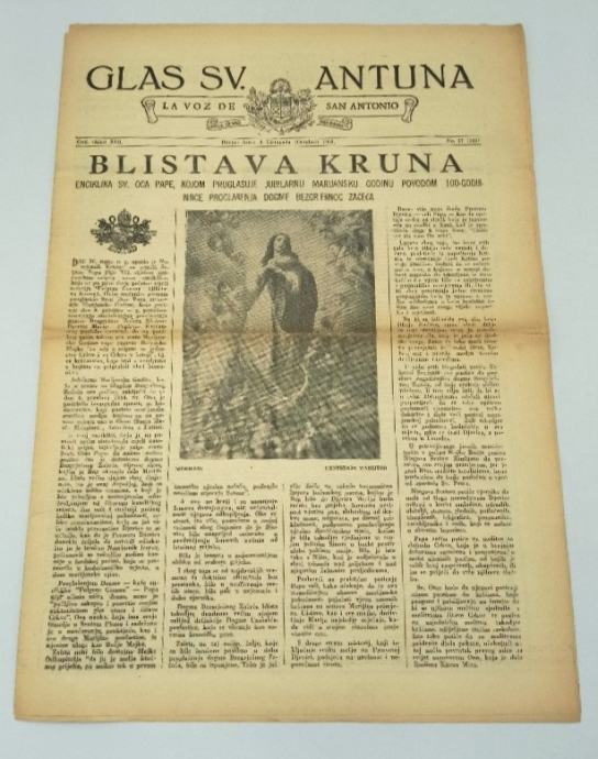 Glas sv. Antuna br. 17(162)/1953.Stranica: 11Dimenzije: 29.5x41Jezik: Buenos AiresPismo: LatinicaStanje: Vrlo dobroUvez: MekiGodina: 1953