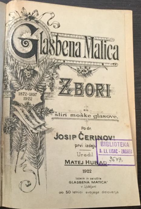 Glasbena Matica, Zbori za štiri moške glasove po dr. Josip Čerinovi