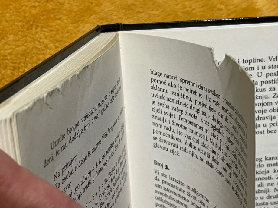 Knjiga je u tvrdom uvezu i očuvano stanje uz par flekica po stranicama (vidljivo na slikama) i malo poderane stranice zbog nestručnog pokušaja ispravka tiskarske greške (spojene stranice na vrhu). Za čitanje ne smeta.