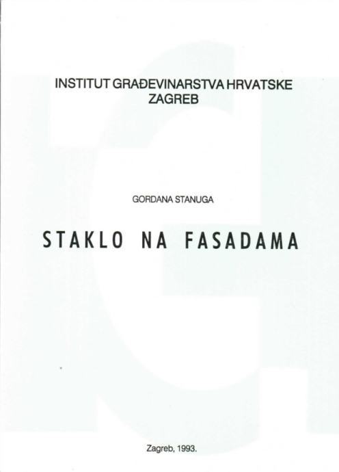 U ovoj, prvoj knjizi na hrvatskom jeziku o primjeni stakla u zgradarstvu, tekstom, slikama, tablicama i formulama, problematika primjene stakla na fasadama objašnjena je sažeto, pregledno i jasno. Korištenjem ove knjige stručnjaci će doći u priliku da se i raniji nedostaci u primjeni stakla isprave primjenom ovdje prikazanih europskih dostignuća.Stranica: 134Jezik: ZAGREBPismo: LatinicaStanje: OdličnoUvez: MekiGodina: 1993