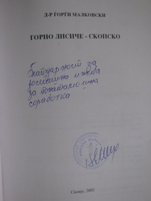 Knjiga sa posvetom pisana na ćirilićnom pismu.
