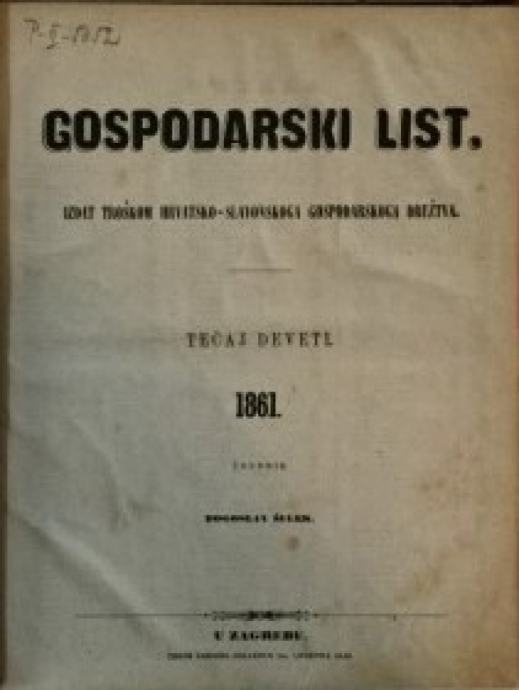 GOSPODARSKI LIST, GODINA IX (1861.) BR.1-52 (UREDNIK: BOGOSLAV ŠULEK)