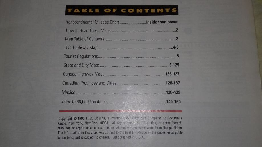 Gousha deluxe 1995 road atlas, karte SAD-a, Kanade i Meksika