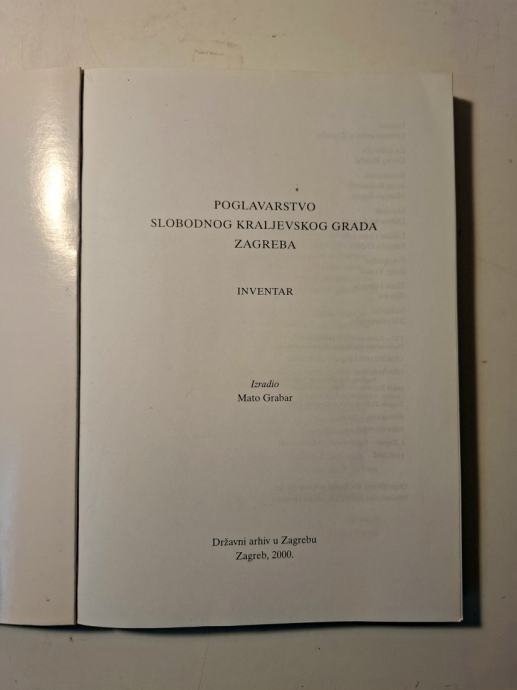 Grabar, Mato - Poglavarstvo slobodnog kraljevskog grada Zagreba : inventar