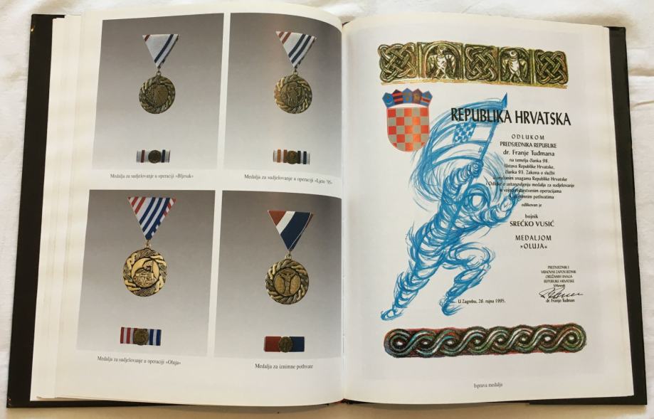 U lipnju 1992. godine donesen je Zakon o odlikovanjima i priznanjima Republike Hrvatske. Njime su ustanovljena tri područja zasluga i uvedena odlikovanja za svako područje te uvedene Povelja Republike Hrvatske i Nagrada Republike Hrvatske. Ovom knjigom predstavljen je hrvatski sustav odlikovanja u cjelini, a tiskan je i Zakon o odlikovanjima i priznanjima s komentarima, objašnjenjima i primjerima iz prakse. Osim odlikovanja obrađene su i medalje. Posebnu vrijednost čini povijesni pregled odlikovanja u nas i u svijetu, ali i propisi vezani za njihovo nošenje.