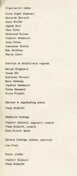 Katalog izložbe održane u Umjetničkom paviljonu od 8. V - 8. VI 1969. Odgovorni urednik Vladimir Gojković. Oprema Ivan Picelj. Fotorafije Marija Braut, Mladen Grčević, Nino Vranić i dr.