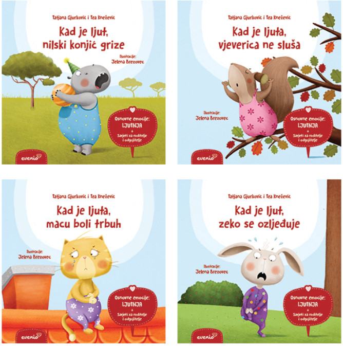 Kad je ljut, zeko se ozljeđuje Kad je ljuta, macu boli trbuh Kad je ljut, nilski konjić grize Kad je ljuta, vjeverica ne slušaDimenzije: 22×22 cmJezik: ZagrebPismo: LatinicaStanje: Nova knjigaUvez: MekiGodina: 2015