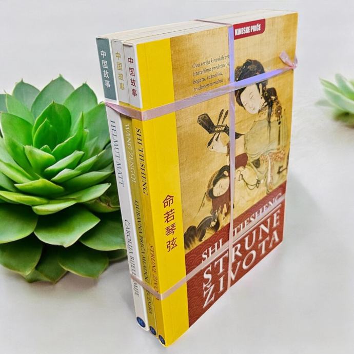 Strune životaKineske priče posvećene su onima koji vole priče i žele nešto više saznati o Kini. Pričama Kinu činimo živopisnijom, smirenijom i realnijom nego što to mogu učiniti mediji, politički ili ekonomski komentatori ili povijesni arhivi i muzeji. Ova serija kineskih priča čitateljima predstavlja bogatu, raznoliku, trodimenzionalnu Kinu. Povijest Kine, njezinu filozofiju i kulturu. Strune života opisuju duboku životnu filozofiju i otkrivaju značenja čovjekovog preživljavanja, iskupljenja kroz svečanu obvezu i ispunjenja procesa koji vodi do besmislenog cilja. Hram Zemlje je piščevo veličanje majčine ljubavi. Hram zemlje je nositelj te ljubavi u kojem očajni čovjek traži nadu i oživljava sjećanja na majku.<br><br>Stranica: 118+120+123<br>Dimenzije: 14x20 cm<br>Jezik: Zagreb<br>Pismo: Latinica<br>Stanje: Nova knjiga<br>Uvez: Meki<br>Godina: 2017<br>
