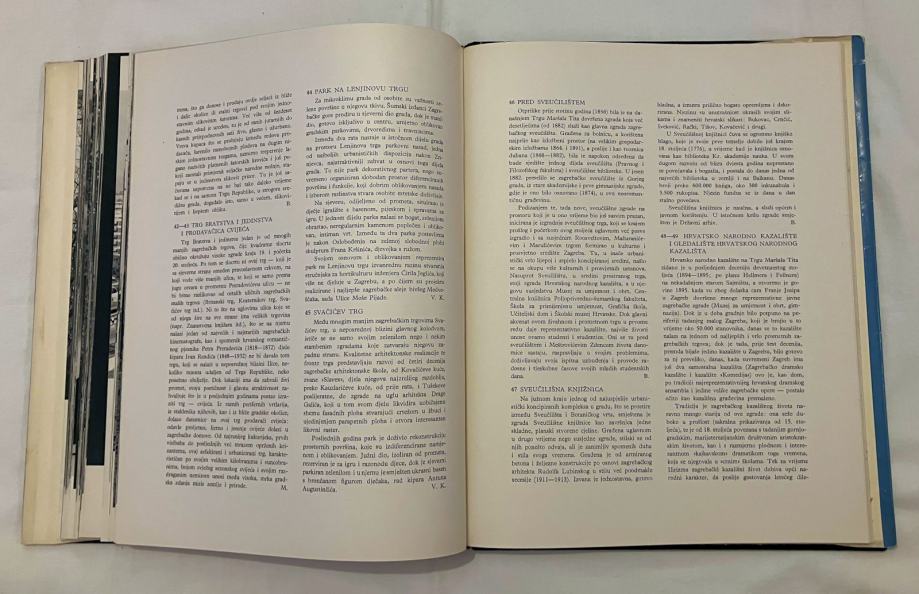 Monografija Zagreb", koju Narodni odbor grada Zagreba objavljuje u jubilarnoj godini proslave 20-godišnjice ustanka naroda Jugoslavije, govori ne samo o ljepotama i znamenitostima glavnog grada Hrvatske, već i o značajnim događajima usko vezanim za njegov razvoj u bogatoj revolucionarnoj prošlosti, o današnjoj stvaralačkoj aktivnosti i sretnijoj budućnosti njegovih građana". -Većeslav Holjevac Fotografije - Tošo Dabac