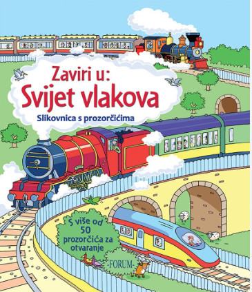 Edukativna slikovnica tvrdih stranica s mnoštvom prozorčica za otvaranje i bogatih ilustracija, namijenjena je djeci mlađe dobi koju zanimaju vlakovi. Na jednostavan način objašnjeno je od čega se sastoje, kako funkcioniraju, kako su izgledali u prošlosti te kako izgledaju vlakovi i njihove pruge diljem svijeta danas. Slikovnica s prozorčićima s više od 50 prozorčića za otvaranje.Stranica: 14Dimenzije: 20 x 22Jezik: ZADARPismo: LatinicaStanje: Nova knjigaUvez: TvrdiGodina: 2022