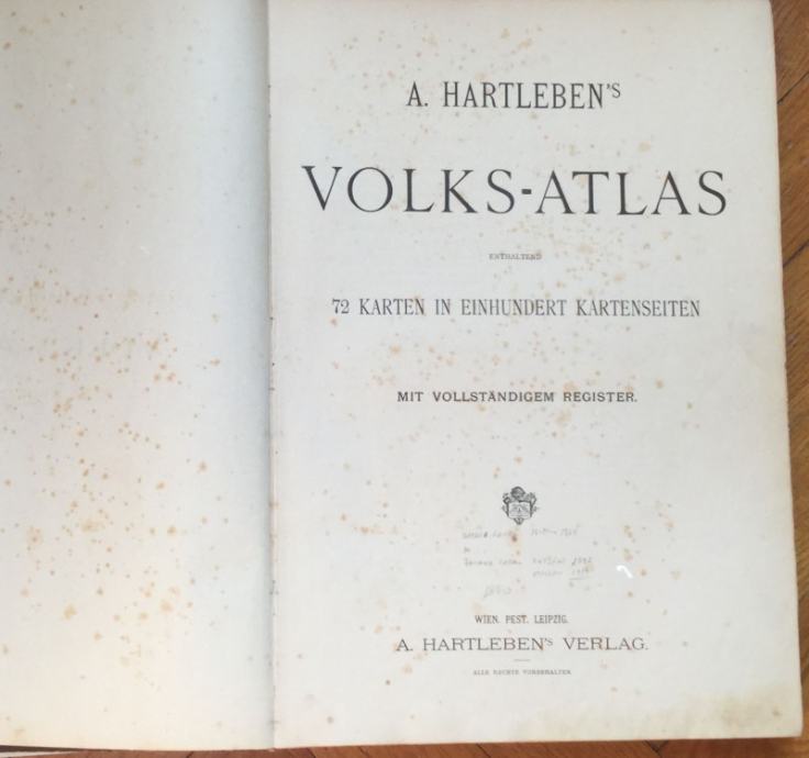 HARTLEBEN, VOLKS-ATLAS, 72 KARTEN IN EINHUNDERT KARTENSEITEN, WIEN,