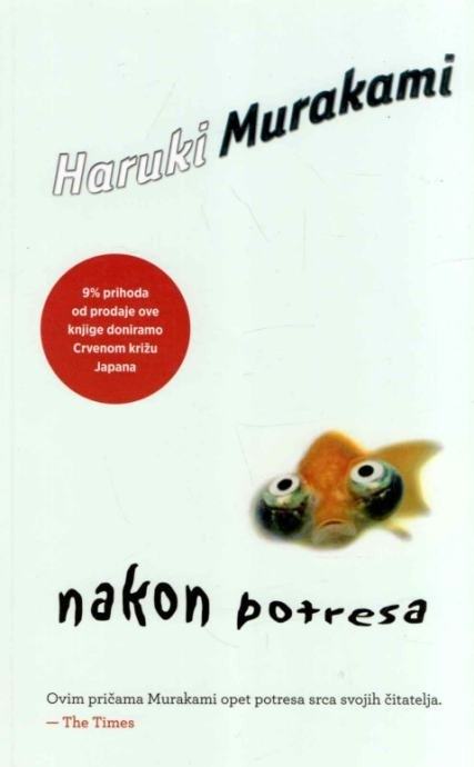 Početak 1995. prekretnica je za suvremeni Japan, koji doživljava surovo buđenje iz konzumerističkog sna cvjetajuće ekonomije: u samo dva mjeseca stravičan potres koji je pogodio Kobe i teroristički napad otrovnim plinom sarinom u tokijskoj podzemnoj željeznici posve su uništili lažno samopouzdanje nacije. Ti su događaji ponukali Harukija Murakamija da se, nakon višegodišnjeg izbivanja uzrokovanog popularnošću romana Norveška šuma koji je samozatajnog autora silom pretvorio u pop-zvijezdu, vrati u domovinu i opiše ih u publicističkoj knjizi Pod zemljom te zbirci pripovijedaka nakon potresa (naslov malim slovima po autorovoj želji).Stranica: 214Dimenzije: 13x20 cmJezik: ZagrebPismo: LatinicaStanje: OdličnoUvez: MekiGodina: 2003