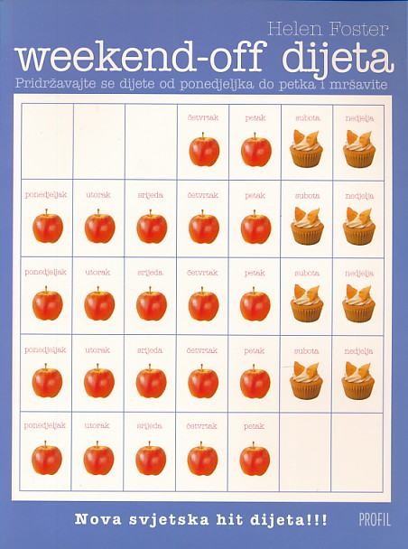 Većina se ljudi strogo pridržava radikalnih dijete neko vrijeme, ali čim vaga ne pokazuje manje kilograma od željenog ili zamišljenog, oni se vraćaju starim navikama i obično vrate sve izgubljene kilograme. Ova je dijeta drugačija po tome što autorica smatra da ne postoje idealni uvjeti u kojima bismo se svi hranili zdravo i ne bi nas mamila omiljena hrana koja deblja. Zato predlaže dijetu koja postaje način života: tokom tjedna drži se dijeta u kojoj ima dosta povrća i voća, hrana je raznovrsna i hranjiva, biraju se manje kalorične namirnice i način pripreme hrane te se nastoji jesti više manjih obroka. Za vikend svatko se može malo opustiti i priuštiti si komad omiljenog slatkiša, naravno ne u neograničenim količinama. Tako će svatko imati snage ponovno započeti s dijetom od ponedjeljka i istovremeno steći naviku razmišljanja o zdravoj hrani i količinama koje pojede.Jezik: ZagrebPismo: LatinicaStanje: Nova knjigaUvez: MekiGodina: 2006