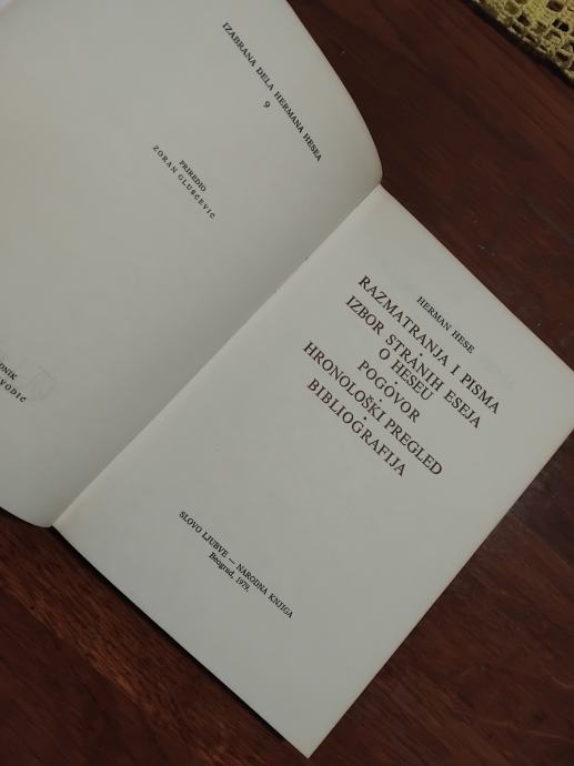 Herman Hese-Razmatranje i pisma-Izbor srtanih eseja o Heseu-Pogovor-Hronološki pregled-Bibliografija