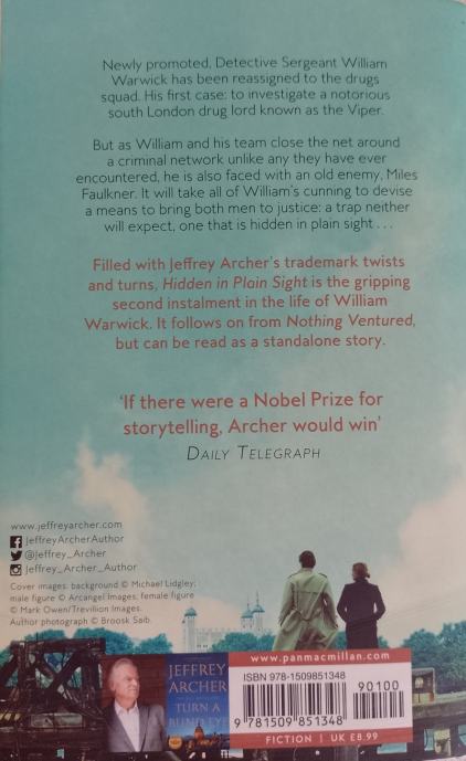 Hidden in Plain Sight drugi je roman koji govori o detektivu Williamu Warwicku, majstora pripovjedača i broj 1 autora bestselera New York Timesa Clifton Chronicles William Warwick je promaknut u detektiva narednika, ali njegovo unapređenje znači da je on, zajedno s ostatkom njegovog tima, premješten u Odjel za drogu. Odmah dobivaju zadatak uhititi Khalila Rashidija, ozloglašenog dilera droge, koji svoju razgranatu mrežu vodi izvan južnog Londona.