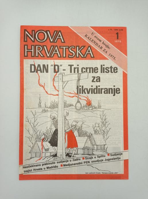Nova Hrvatska 1/1975Glavni i odgovorni urednik: Jakša KušanStranica: 20Dimenzije: 21x30Jezik: LondonPismo: LatinicaStanje: OdličnoUvez: MekiGodina: 1975