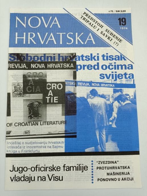 Nova hrvatska 19/1974Predstoji suđenje Tripalu i SavkiStranica: 20Dimenzije: 21x30Jezik: LondonPismo: LatinicaStanje: OdličnoUvez: MekiGodina: 1974
