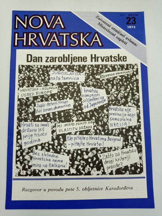 Nova hrvatska 23/1976Zatvoreni otmičari aviona: Misteriozni zapletiStranica: 20Dimenzije: 21x30Jezik: LondonPismo: LatinicaStanje: OdličnoUvez: MekiGodina: 1976