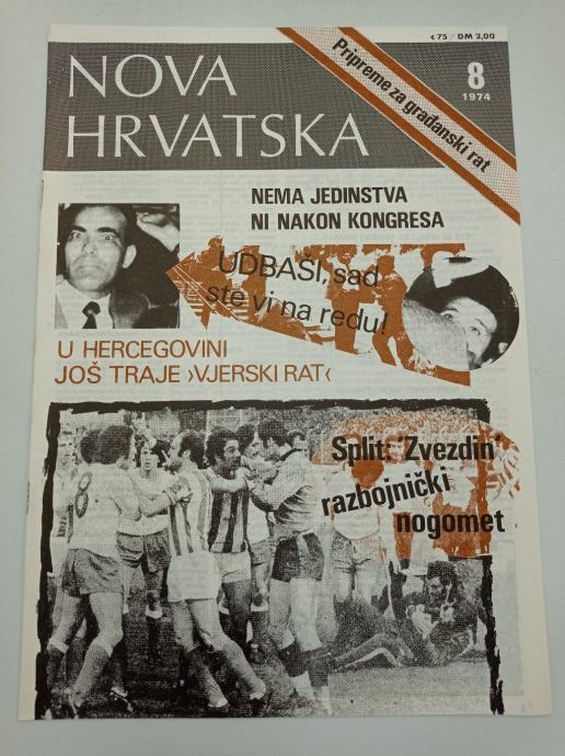 Nova hrvatska 8/1974Prirpeme za građanski ratStranica: 20Dimenzije: 21x30Jezik: LondonPismo: LatinicaStanje: OdličnoUvez: MekiGodina: 1974