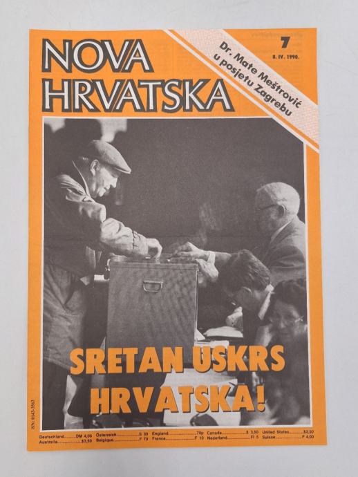 Nova Hrvatska br. 7/1990.Glavni i odgovorni urednik: Jakša KušanStranica: 19Dimenzije: 21x30Jezik: LondonPismo: LatinicaStanje: OdličnoUvez: MekiGodina: 1990