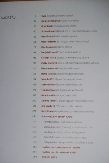 Recepti osamnaest najboljih hrvatskih kuhara u ovoj knjizi otkrivaju bogatstvo hrvatskoga kulinarskog naslijeđa, ali i inspiraciju i inovativnost s kojima mu se može prići. Nova hrvatska kuhinja knjiga je koja će promijeniti mnoge stolove i zasigurno obilježiti ovo gastro-desetljeće.
