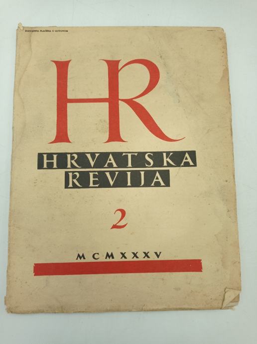 Hrvatska revija br. 2/1935Stranica: 55Dimenzije: 22x28Jezik: ZagrebPismo: LatinicaStanje: DobroUvez: MekiGodina: 1935