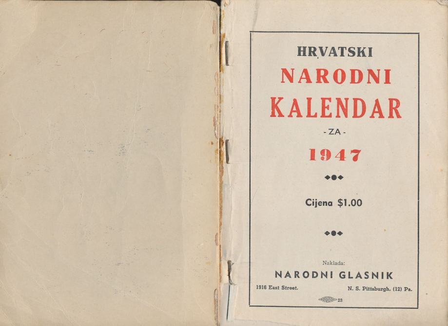 Hrvatski narodni kalendar za 1947 Pittsburgh