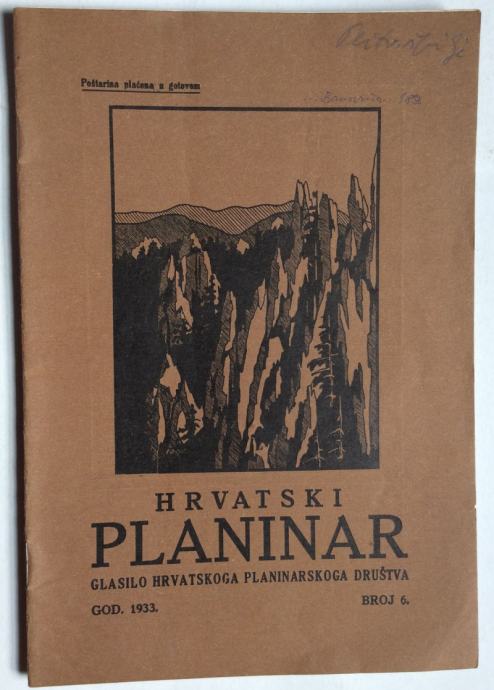 HRVATSKI PLANINAR, ČASOPIS, 1933., BROJ 6