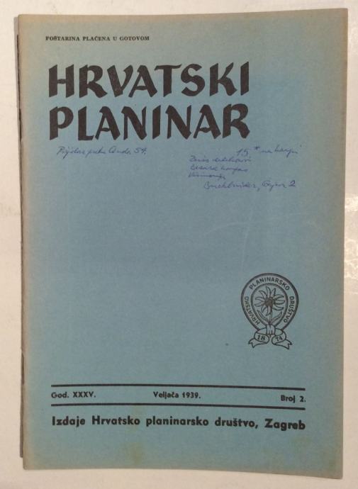 HRVATSKI PLANINAR, ČASOPIS, 1939. BROJ 2