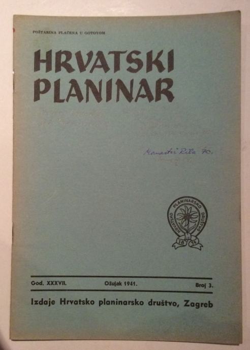HRVATSKI PLANINAR, ČASOPIS, 1941. BROJ 3