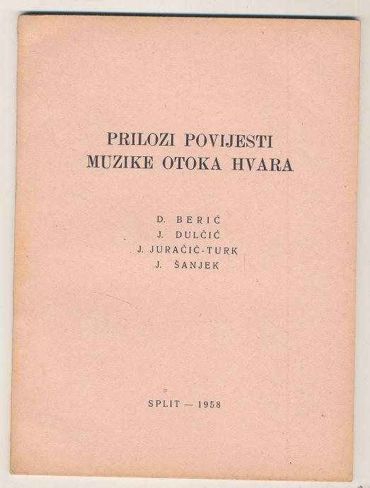 HVAR Berić Dulčić Juračić-Turk Šanjek Prilozi povijesti muzike otoka H