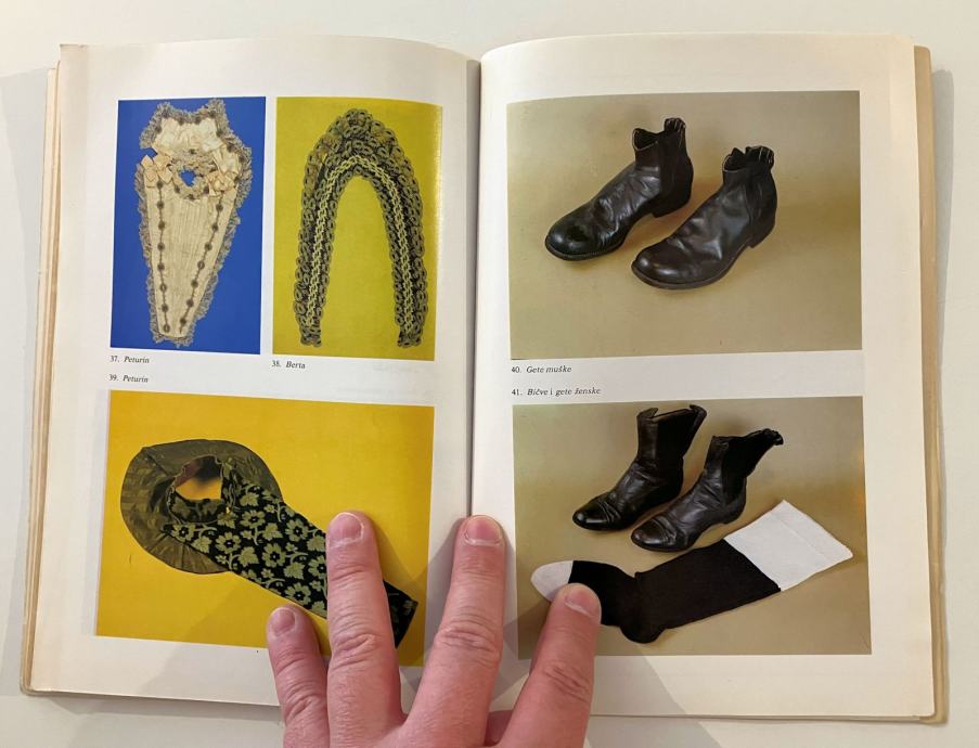 Hrvatske narodne nošnje: povijest, slike, krupni planovi, nakit i pribor. Sheme za izradu kostima i komponenti. Pisano na hrvatskom, engleskom, francuskom i njemačkom jeziku.
