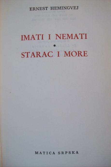 IMATI I NEMATI / STARAC I MORE - Ernest Hemingway
