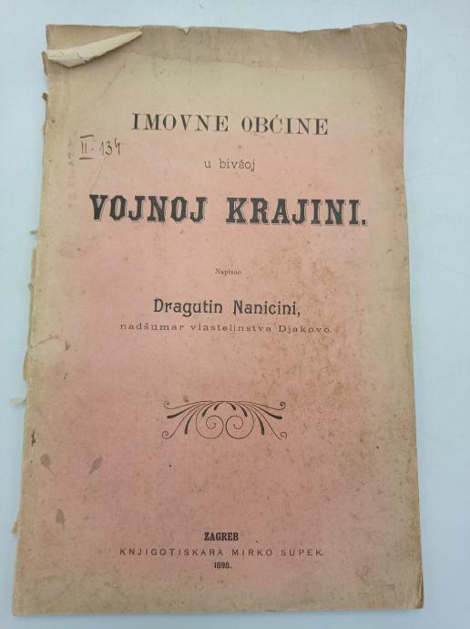 Dragutin Nanicini: Imovne obćine u bivšoj Vojnoj krajini Stranica: 61Dimenzije: 15.5x24Jezik: ZagrebPismo: LatinicaStanje: OdličnoUvez: MekiGodina: 1898