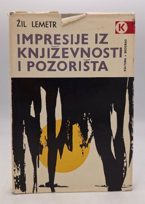 Jules Lemaitre: Impresije iz književnosti i pozorišta Stranica: 225Dimenzije: 12.5x18Jezik: BeogradPismo: LatinicaStanje: DobroUvez: Tvrdi s ovitkomGodina: 1965