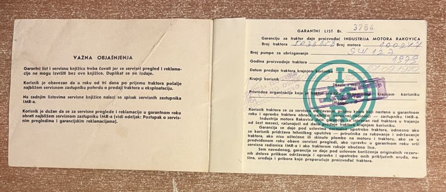 IMR - GARANTNI LIST I SERVISNA KNJIŽICA
