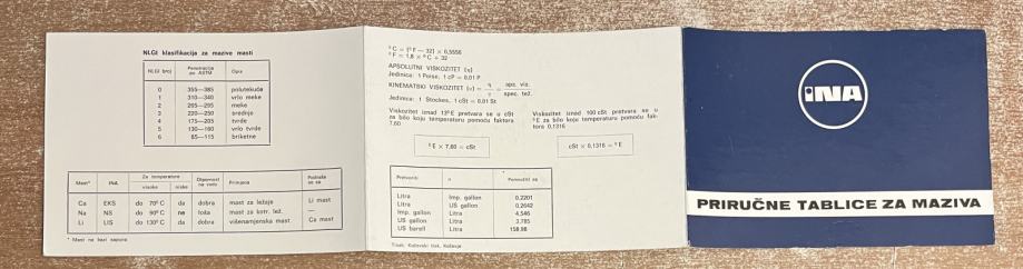 INA - PRIRUČNE TABLICE ZA MAZIVA