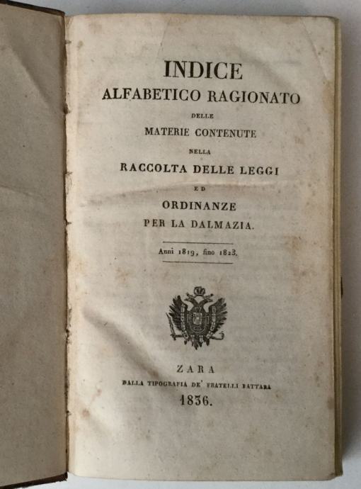 INDICE ALFABETICO RAGIONATO : ORDANANZE PER LA DALMAZIA