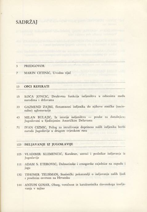 Naslov: Iseljeništvo naroda i narodnosti Jugoslavije i njegove uzajamne veze s domovinom