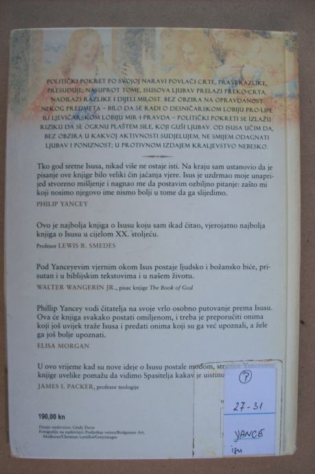 Knjige protestantskog autora Philipa Yanceyja čitaju milijuni ljudi. Riječ je o autoru koji je iznimno nadaren. Za njega je Billy Graham, jedan od najvećih kršćanskih propovjednika XX. stoljeća, doslovno rekao: "U evangeličkom svijetu nema pisca kojemu se više divim i kojega više cijenim." Philip Yancey predstavlja nam Isusa kakvog zaista nismo poznavali.