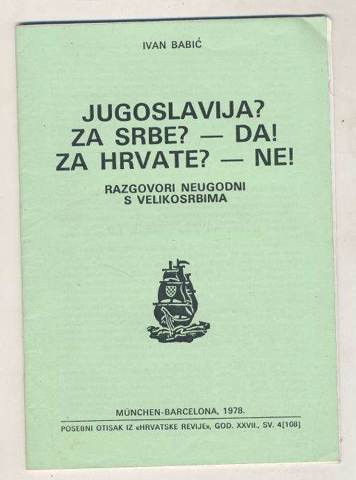 Ivan babić Jugoslavija za srbe Da - za Hrvate Ne emigracija