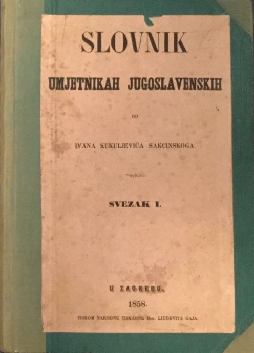 IVAN KUKULJEVIĆ SAKCINSKI : SLOVNIK UMJETNIKAH JUGOSLAVENSKIH (KOMPLE