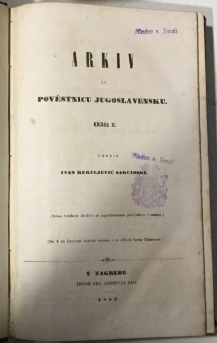 Ivan Kukuljević Sakcinski (ur.): Arkiv za pověstnicu jugoslavensku II