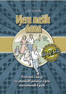 Knjiga je koncepcijski ostvarena kao interaktivni pastoralni priručnik, s konkretnim prijedlozima za praktičnu primjenu u vjerničkom i crkvenom životu.Nastala je sabiranjem tekstova istoimene rubrike Glasa Koncila, u kojoj su novinari tjednika u Godini vjere, uvažavajući stavove i dokumente II. vatikanskog koncila, osobito Katekizma Katoličke Crkve, u svakom broju Glasa Koncila promišljali izazove življenja vjere u suvremenim okolnostima i nudili konkretne prijedloge za njezino produbljivanje u svakodnevnici – obiteljskoj, radnoj, političkoj, društvenoj...Tematizirajući ljudske pozive i profesionalna zanimanja, u osam velikih tema – obiteljski život, rad, umjetnost, socijalno ugroženi, država/društvo, odgoj, gospodarstvo, Crkva – tekstovi u knjizi strukturirani su tako da najprije daju osnovne i najvažnije podatke o pojedinom zvanju/zanimanju, suvremene izazove i poteškoće pojedinog zvanja, a potom je, u svrhu nalaženja odgovora na konkretne izazove, dvojbe i probleme, to zvanje/zanimanje prikazano u svjetlu vjere.Pridonose tomu i objavljeni poticajni primjeri i svjedočanstva suvremenih vjernika kao i već proglašenih blaženika i svetaca Katoličke Crkve. Jer, svjedoči to više od 250 stranica ove knjige, nipošto nije nevažno, niti može biti isto nosi li se suvremeni čovjek s izazovima svoga poziva i zanimanja oslonjen samo na svoje vlastite snage, iskustva, vještine i sposobnosti, ili je uza sve to još ohrabren, osnažen i savezništvom i prijateljstvom s Bogom.U praksi, tekstovi, prijedlozi i ideje novoobjavljenog priručnika mogu se primjenjivati na dva načina. Pomoću "pastoralnoga kalendara" koji se nalazi na početku knjige, a u kojemu je izdvojeno više od stotinu datuma crkvenih i društvenih blagdana, važnijih dana u godini u kojima će tekstovi knjige najbolje poslužiti. Npr., uz prvu nedjelju u veljači – Međunarodni dan života: tekstovi Majčinstvo (str. 17), Djeca (str. 25.) i Očinstvo (str. 21). Drugi način primjene tekstova je po spomenutim (glavnim) temama.Prednost ovoga priručnika je i u tome što su tekstovi/teme zamišljeni kao nacrti, predlošci ili početne točke na temelju kojih svaki pastoralni djelatnik može, ako to želi, i sam kreativno osmisliti, razvijati i prilikama prilagoditi vlastito pastoralno djelovanje. U tome će mu upravo i pomoći "pastoralni prijedlozi" u knjizi, tj. više od 200 ideja za konkretnu primjenu pojedine teme.Knjiga "Vjera naših dana", kao plod Godine vjere (koju je s ciljem davanja zamaha novoj evangelizaciji 11. listopada 2012. proglasio Benedikt XVI., a 24. studenoga 2013. zaključio papa Franjo.), predstavlja svojevrsni prinos novoj evangelizaciji u Hrvatskoj.Glavni urednik Glasa Koncila mons. Ivan Miklenić i članovi uredništva – Branimir Stanić, Vlado Čutura, Darko Grden, Tomislav Šovagović, Ivan Uldrijan, Tomislav Vuković i Vojmil Žic – "Vjerom naših dana" približili su i pokazali moguće načine pronošenja, življenja, svjedočenja i "obrane" vjere u najrazličitijim pozivima i zanimanjima suvremenih ljudi.Stranica: 256Dimenzije: 170 x 240 mmJezik: SplitPismo: LatinicaStanje: Nova knjigaUvez: TvrdiGodina: 2014
