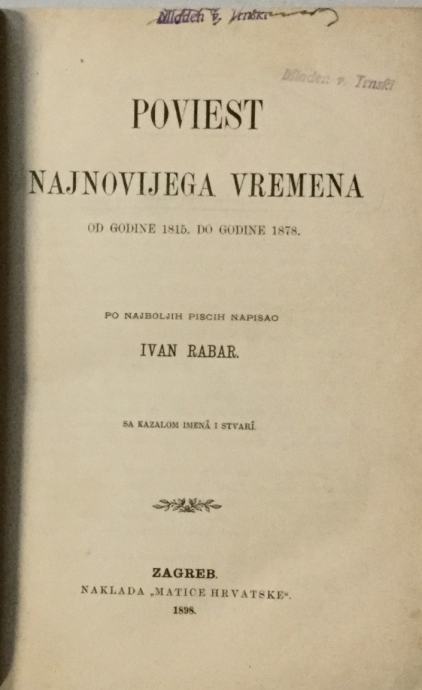 Ivan Rabar: Poviest najnovijega vremena od godine 1815. do godine 1878
